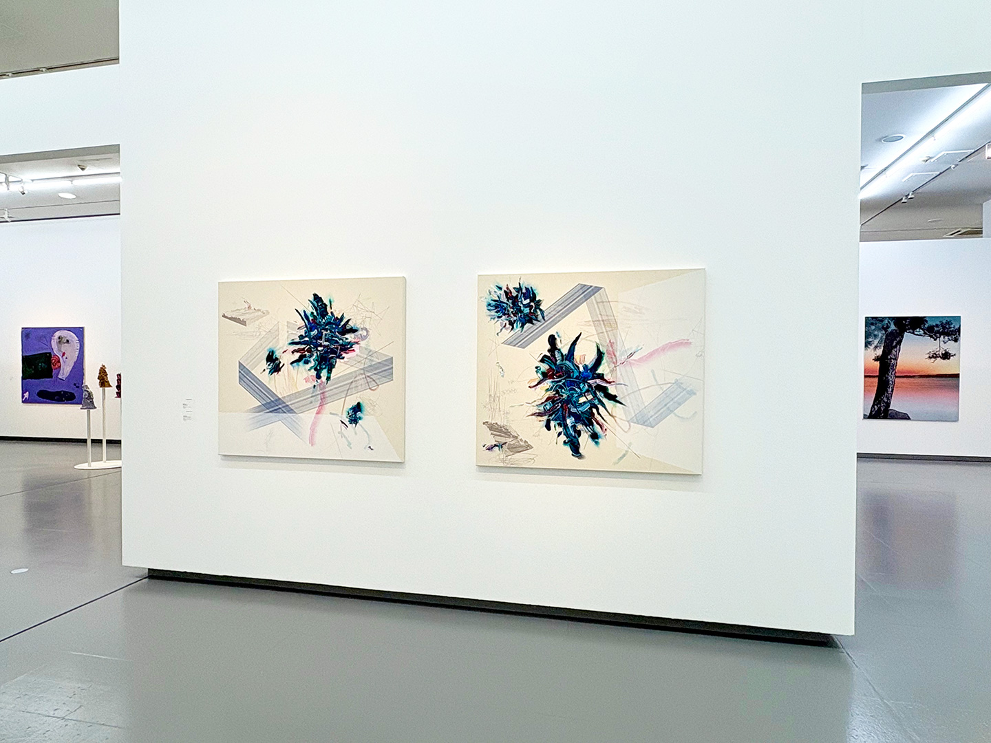 Ich versuche beide Erfahrungen in gegenseitiger Reflexion auf die Leinwand zu bringen. Zwischen digitaler Malerei, die folgerichtig nur als Druck in die physische Welt der Pigmente transformiert werden kann (und so auch Pausen erzwingt), und händischer traditioneller Malerei entstehen hybride räumliche Strukturen und malerische Geflechte aus Licht und Farbe. Als letzten Beziehungspunkt füge ich einen Titel hinzu, der oft aus einem Gedanken, Gefühl oder Austausch während der Arbeit erwächst. Dabei bin ich von den enststehenden vielartig verschlungenen Gebilden und Räumen und deren Wirkung am Ende häufig selbst überrascht. (I.T.)