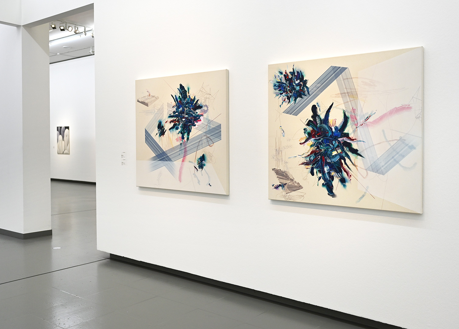 Da zu unserer heutigen Welt zunehmend digitale Vorgänge gehören und ich seit der ersten Berührung eine Faszination, gepaart mit natürlichem Argwohn für diese Techniken empfand, verhandeln meine Arbeiten abstrakte Malerei in einer zunehmend analog-digitalen Umgebung. Sie konzentrieren sich auf die Auswirkungen dieser Erfahrungen auf den menschlichen Körper, insbesondere auf meinen eigenen Körper während des Malens und Zeichnens.